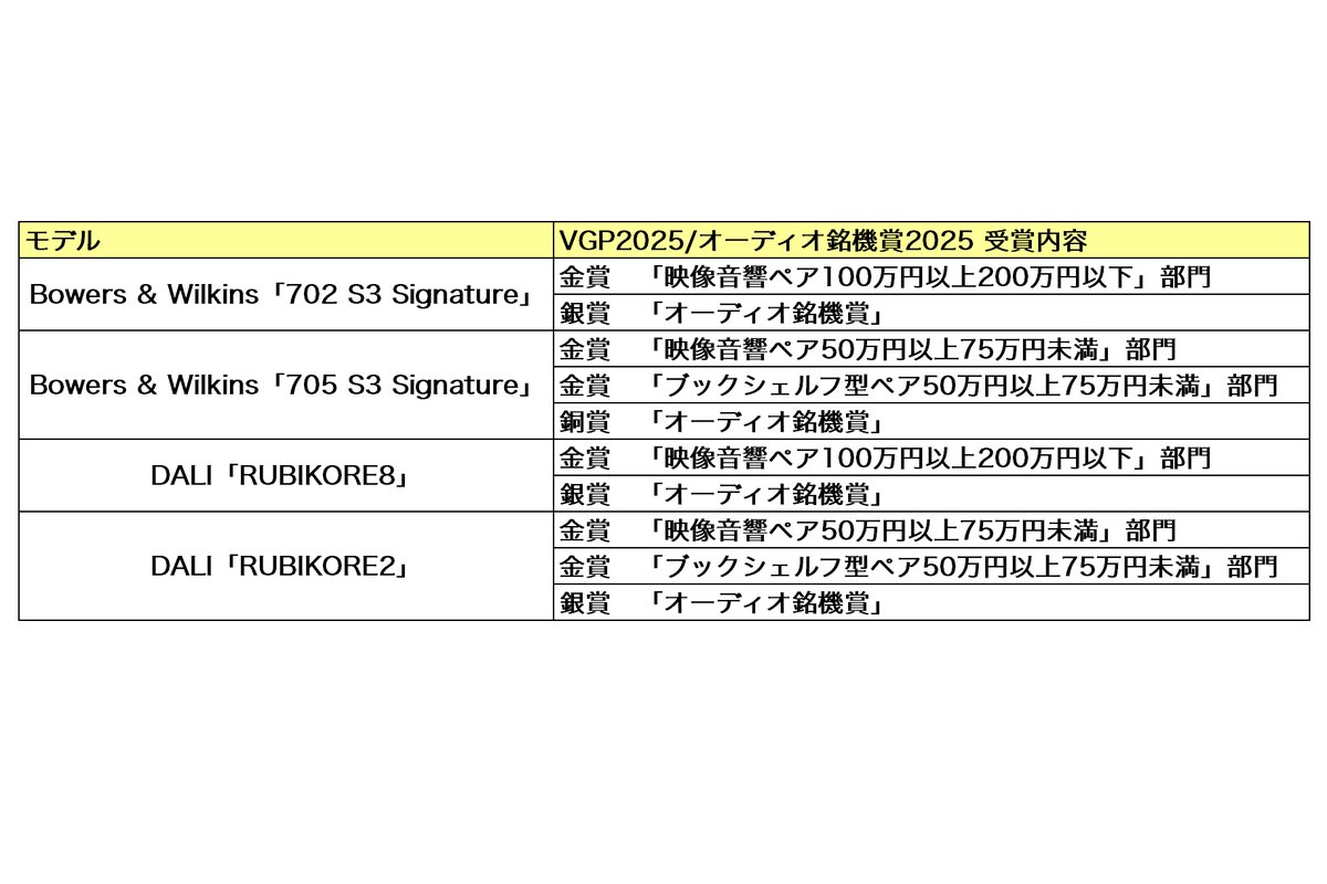 VGP2025/オーディオ銘機賞 受賞モデルの一覧