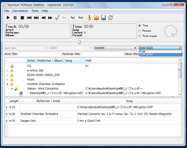 Windows+HQ Playerの環境ならASIO方式による5.6MHz再生にも対応