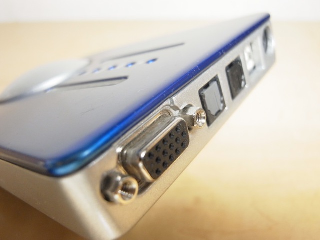 背面。写真手前がブレイクアウト用のD-Sub端子。古株のPCユーザーの方は「VGA端子と同じ形だ」と懐かしいかも