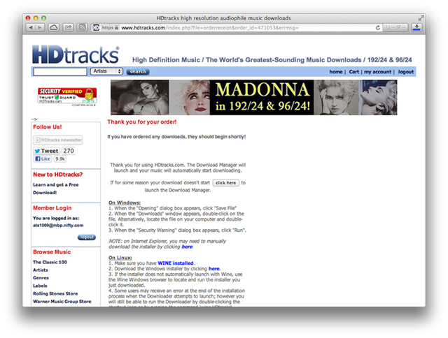 【6】進めていくと最終的にこのような画面が表示され、そして自動でダウンロードが開始される。のだが、ここでダウンロードされるのが音楽ファイル本体ではないことが次のポイント