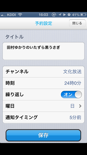 毎週の繰り返しや通知のタイミングを設定して「保存」しておく