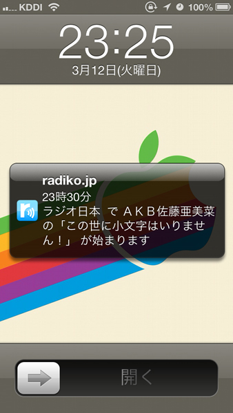 iOSの場合はこんな感じで通知が表示されてチャイムも鳴る