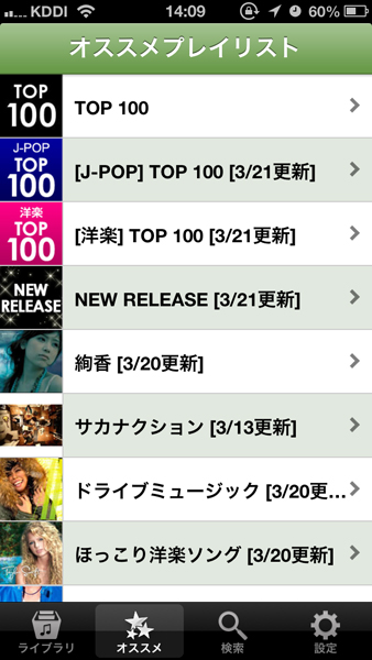 LISMO unlimited。au(KDDI)が提供するサービス。自社スマートフォン向けが主だがソフトバンクのiPhoneでも利用可能