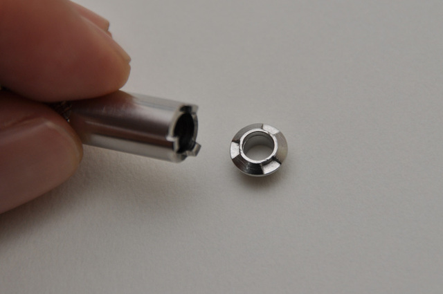 ステンレスカラーにはノズルキーをひっかける3つのくぼみが設けられている