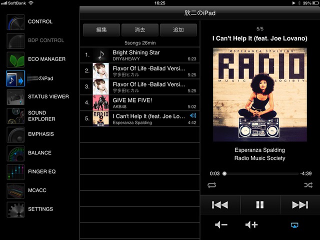 iPadやiPhone内に保存された音源を、「iControlAV」から再生することも可能となった。アプリを切り替えることなく、その他の操作とシームレスにAirPlay再生を行える