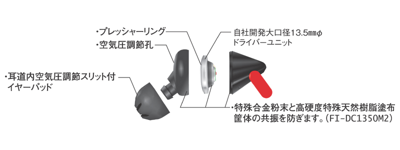 FI-DC1350M2の断面図。円錐筐体で過渡特性の良さを実現したほか、特殊天然樹脂を塗布し剛性を向上している