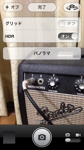 iOS 6ではパノラマへの切り替えと写真と動画の切り替えはこのように別々の場所に配置されていた