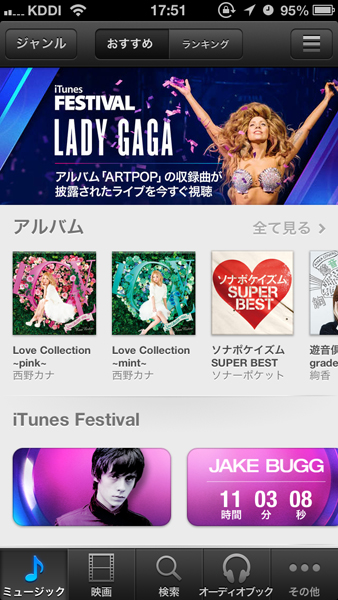 iOS 6での「iTunes」アプリ。けっこう最近に一新されたのであまり古びた感じもしない