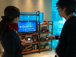 まずはDLNAの基礎知識について説明を受ける記者。そしてその後、書斎のVAIOに入っているコンテンツをリビングスペースに置いてあるBRAVIAで見たり、逆にリビングのBDレコーダーの中のコンテンツを書斎のBRAVIAで再生したりといった具合に、実際の使用方法を体験。DLNAの便利さと簡単さを、文字通り体で感じることができた。