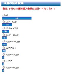 結果は「0円」が48パーセントでトップ。直近3ヶ月では特にAV機器購入はしていないというユーザーが半数近くを占めた。以前に何かを購入したばかりだったのか、それともこれから登場する製品のために積み立てているということなのだろうか。