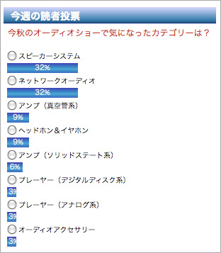 11月22日〜11月29日の読者投票:「今秋のオーディオショーで気になったカテゴリーは?」