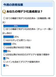 地デジ化、2台目以降も含めた“完全移行率”が7割越え − 今週の読者投票