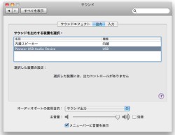 と進んでゆき、「Pioneer USB Audio Device」を選んで音声出力先をN-50に設定します(詳細な設定方法は、パイオニアの取扱説明書をご覧ください)。