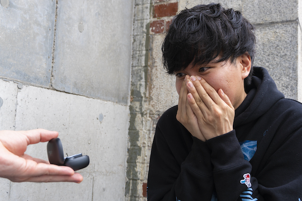 マツナガ:休み明けから早速ビデオ会議……。だけどタカハシさんのアドバイスを参考に、新しい完全ワイヤレスを買った僕に死角はない!
