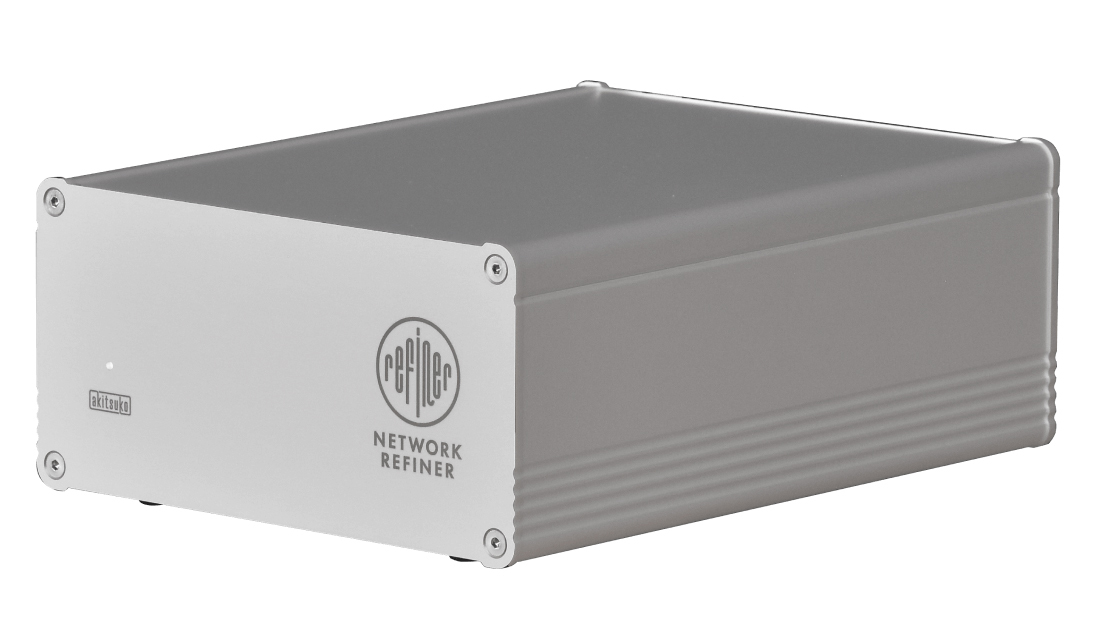 「ネットワークリファイナー」とはネットワークオーディオの音質向上を目的とした2ポートのオーディオ用スイッチングハブのこと。LANポートそのものがノイズ源となり音質に大きく影響するため最小限の2ポートとした。他のネットワーク機器からのノイズを遮断し、内蔵の低ノイズ電源、高精度クロック、厳選したパーツで構成した回路による高品質なLAN信号がネットワークプレーヤーに供給される。