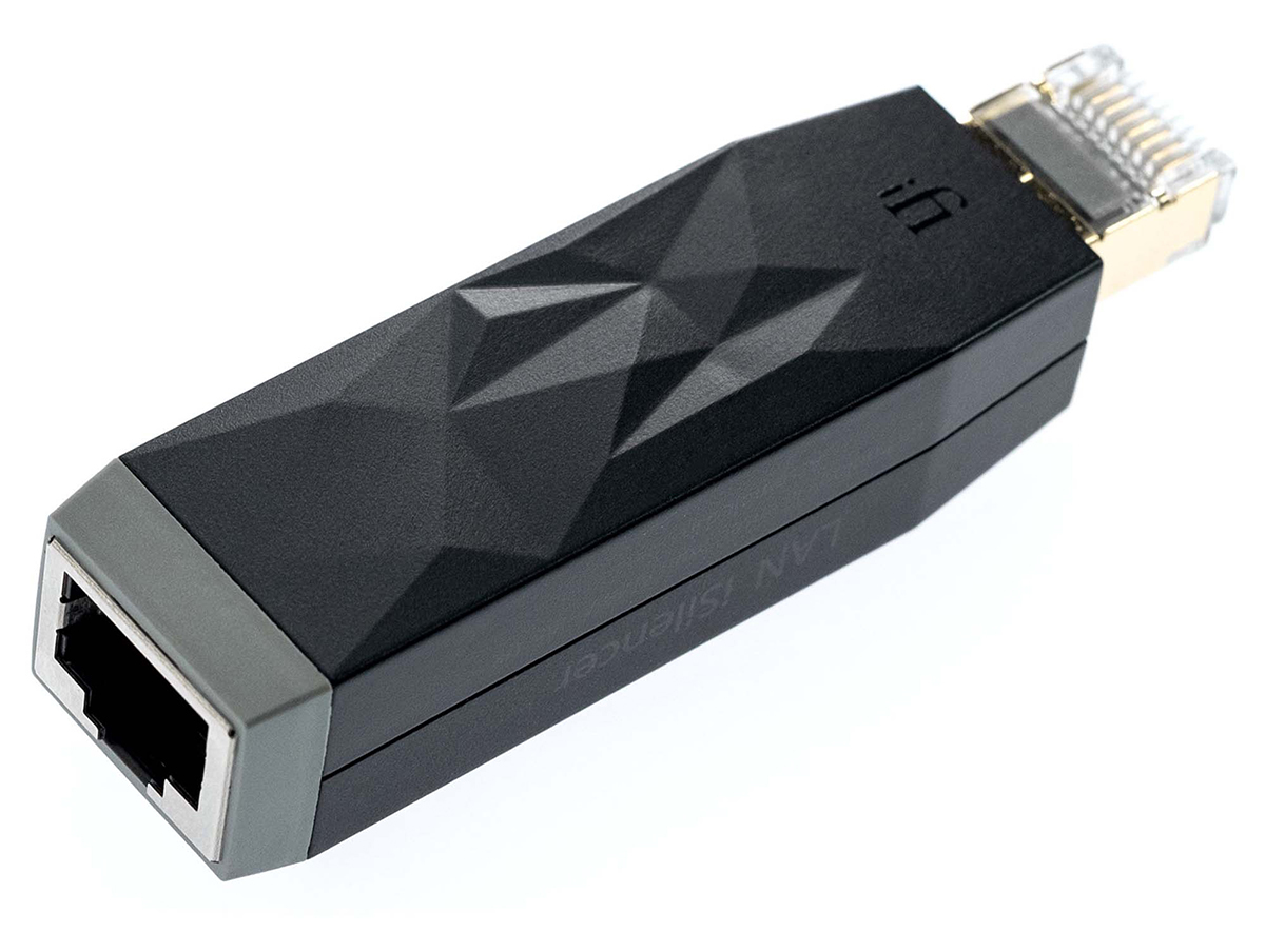 iFi audioのサブブランドとして誕生したSilentPower。過去にiFiブランドで発売されたアクセサリー類もSilentPowerとして再編成されている。入力にLAN(RJ45)ソケット、出力にLAN(RJ45)プラグを装備する「LAN iSilencer」は搭載するガルバニック絶縁技術により電気回路を分離して、グラウンド電位の差やAC電源による誘導電流を遮断する。