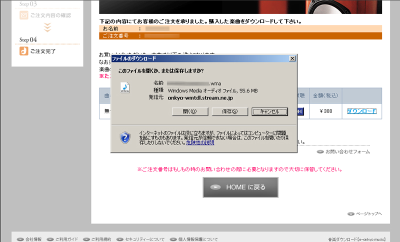 「ダウンロード」をクリックすると、楽曲のダウンロードが始まる