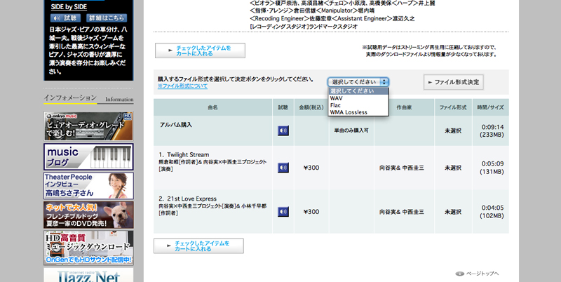 ダウンロードしたいコーデック(音楽ファイルの形式)をセレクトしてカゴに入れる。このあとの流れはWindowsと同じ