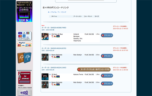 購入後の音源は1曲ずつのほか、1つのフォルダにまとめてダウンロードすることもできる