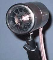 | 参考出品の球形セラミックスピーカー。何と全帯域を圧電素子で再生する。なかなか厚みのある音を奏でていた。 |