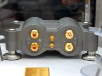 脚部は振動伝搬を吟味して設計したというインシュレーターを装備。またフロントパネルには黒檀をあしらい高級感のあるデザインに仕上げている。背面端子部にはオーディオテクニカ専用につくられたマツキン製のオリジナルピンジャックを採用している。