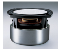 ウーファーユニットは、A-OMFモノコック振動板を採用。従来、別パーツで装着されるセンターキャップを廃し、変曲点のない椀形状に一体成型することで、軽量化と剛性の向上を実現し、分割振動を抑えることに成功している。