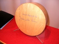 ソニーのリスニングルームはビジュアル系とオーディオ系に分かれていたのだが、本レポートではオーディオ系試聴室について細かく見ていきたいと思う。まずメインの出展となるのは、前回の『A&Vフェスタ2006』では試作機の展示だけだった「SS-AR1」が、今回はDRシリーズのアンプ/SACDプレーヤーとの組み合わせによる同社最高峰のサウンドが味わえるリスニング・セッションである。「AR1」のナチュラルで豊かな響きは非常に有機的であるのに対し、DRシリーズは対象的に理知的に作り上げられた、アルミボディによる精悍で無機質なイメージを受ける。しかしこの二つの流れが融合したサウンドはとても心地良いもので、非常にバランスの取れた音質である。今までのモニター系にも通じるソニーサウンドとは違った、新しい魅力に溢れるものと感じる。なお「SS-AR1」を購入された方にはフロントバッフルをくりぬいた特性オーナメントもプレゼントされるということで、同時に展示もされていた。塗装処理やソニーロゴの加工も全て実機と同様に施された、手の込んだものである。オーナメント背面には「SS-AR1」の開発にあたった、メイン設計者・加来氏のサインも記されている。同スペース内には参考出品として、キャビネットの美しい木目がはっきりと分かるナチュラル仕上げの「SS-AR1」もお披露目されていた。