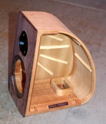 エンクロージャーデザインは、高峰楽器が持つアコースティックギターのノウハウを投入したもの。内部の力木の配置や側板と背板の接続方法などは、まさにアコースティックギターを思わせるものだ。