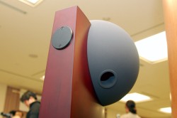 21cmトライアキシャルドライバーユニット「TC23」を円形のエンクロージャーに収め、斜めに傾けた木製スタンドに取り付けたユニークなフォルム。ローミッドレンジと高音域スピーカーP2Cリングに特許素材の「ポリエーテル」を使用し、音の広がりやパワーなどを改良している。再生周波数帯域は80Hz〜25,000Hzで、指向性は全周角60度。定格入力は220Wで、インピーダンス(公称)は8Ωとなる。