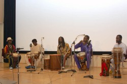 「録音するときは必ずヘッドホンでモニタリングをすること。耳で聴いている音と録れている音は違うことがある」「モニターヘッドホンはつける前にボリュームがゼロになっているか確かめること。いきなりの大音量で耳を傷めないように」「パーカッションは予想以上の音量が出る場合があるので、余裕を持ったレベル設定をすること」といった録音のコツを奥田氏が解説してくれたところで、「アフリカスヌヘルコム」が入場。参加者たちはPCMレコーダーをチェックしながら、リズムが躍動する打楽器とボイスの競演に真剣に向き合っていた。