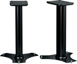 ブックシェルフスピーカー用のスピーカースタンド「AS-12EX」は、スタンド自身の揺れの共振周波数を可聴帯域以下とし、インパルス波形の反作用を効果的に吸収するという新しい設計理論を取り入れて設計された。サイズは幅400×高さ579×奥行き357mmで、重さは1本5.5kg。床面との接点は3点支持構造を採用する。