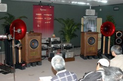 エソテリックでは、昨日発表されたばかりのSACDプレーヤー「SZ-1s」とプリメインアンプ「AZ-1s」(関連ニュース)や、TANNOYの「Definitionシリーズ」(関連ニュース)など秋冬商戦の注目製品を多数展示。同社が取り扱う各ブランドの製品が所狭しと並べられている。