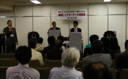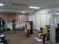初日9日の17時40分からは、メーカーイベントとして、昭和電線デバイステクノロジー社の関雅英氏による解説つきで、来場者がクワイセントパネルを体験。クワイセントパネルがまったくない場合と、効果的に設置した場合とで4曲聴き比べを行った。