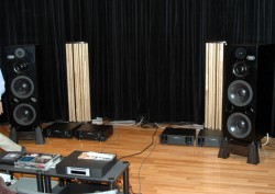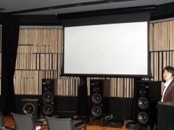 デモの音源には、ピアノソロやジャズトリオ、オーケストラなどを使用。楽曲ごとにカーテンを開閉し、それぞれでAGSの効果を体験した。デモは製品の有無によって大きな差が感じられる内容で、analog誌の記者も製品の効果に驚きを見せていた。