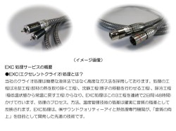価格の面からもリーズナブルになっている点も特徴のひとつ。例えば、「7NA2070」(1.0M)は、同社が処理済み製品として発売しているEXC-ACRO製品の処理部分の額が31,500円(税込)。こちらと比べて割安にEXC処理を施すことが可能だ。また、EXC処理費以外にかかる送料、代金引換手数料は基本的にサウンドクォリティーアイが負担する。