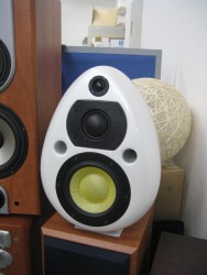 (株)ラステーム・システムズから、これまでにない新しいタイプのスピーカーシステムが誕生した。写真のようなまるい形をしており、音のスタンディング現象を起こさない形状となっている。