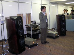22日13時から開催されたのは、山之内氏によるセミナー「最高峰のPCオーディオを聴く」。リンのKLIMAX DSとフェーズテックのHD-7A、再生ソフトとしてAmarraやSongbirdを使用。CDをリッピングしたロスレス音源や、リンレコーズのマスタークオリティ音源、USB音源などを用意し、現在考え得る最高のクオリティのものを集めている。会場は入り口まで人で埋まるほどの大盛況となった。