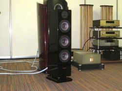 続いて登場したのはDefinitionシリーズの中核をなすモデル「DC8 T」。「タンノイとしては非常に現代的なモデル。このサイズとしては低音が十分に出る。買った当日から満足できる音を再生できるのが特徴だ。甘い雰囲気になりがちな女性ボーカルも、イギリス紳士のような渋い風合いで聴かせてくれる」とコメントした。