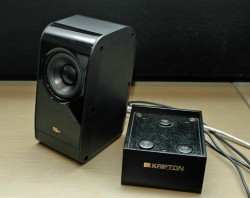 開発を手がけた技術開発室 室長の渡邉 勝氏は「クリプトンのスピーカーとオーディオアクセサリーの技術をコンバインして製作した製品」と本機を紹介する。「高音質の世界をオールインワンシステムで楽しめるのがコンセプト。口径が小さいので近接距離でも聴けるし、バスレフから十分な低音も出る。スピーカー単体を机にそのまま設置すると音質が劣化するので、デスクトップ上での利用にはこのインシュレーターボードが高音質再生のミソになる」と説明。周波数帯域は80Hz〜10kHz程度。クロスオーバーがないためボーカル等の再生にも優れているという。