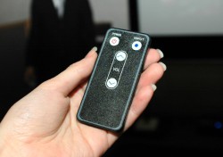 オーディオアクセサリーを発売する同社らしく、スピーカー単体ではなく、スピーカーの設置台として使用するインシュレーターボードと2mの無酸素電線の電源ケーブルをセットにした“オールインワンシステム”として発売するのも本機の特長だ。インシュレーターボードは幅100×奥行き120×高さ50mmのサイズで、質量は800gと手にとるとずっしりと感じる重さ。ボートとスピーカーの間には口径20mmのハイカーボンスチール製インシュレーターが3個配置されている。USBケーブルとリモコンも付属する。