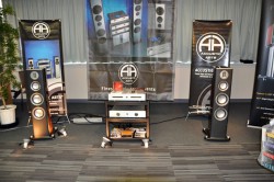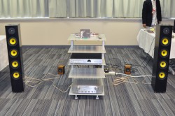 (株)ハイ・ファイ・ジャパンは、同社が取り扱うAccustic ArtsのCDプレーヤー「PLAYER ES」とプリメインアンプ「POWER ES」に、MONITOR AUDIOの「PL-200」を組み合わせてデモを行っている。