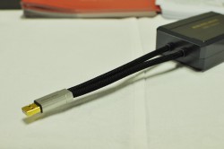 アコースティック・リヴァイヴは、USBケーブル接続でのPCオーディオリスニング時における課題といわれている、PC自体が発生するノイズを効果的にカットできるという「USBアイソレーター」を参考出展した。今秋発売を予定しているという「RUI-1」は、信号ライン/電源ラインともにPCノイズをナノレベルまで減少させ、「ほぼ100%」近くノイズをカットできるという製品。使い方はPCとUSBケーブルとの間に挟み込むだけ。ケーブル部分は今年の夏に同社が発売したオーディオ用USBケーブル「USB-1.0PL」と同じく、最大径導体φ0.8の電源・信号完全セパレート構造を採用している。特注でUSB-1.0SPと同じようにA端子まで完全分離することも可能だ。USB2.0採用機器は非対応となる。予価は59,850円(税込)で、特注分はプラス15,750円(税込)。