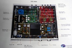 オーロラサウンドは、デジタル電源・アナログ電源・真空管電源という3種類の電源を搭載したDAC「CADA」を出展している。電源を分けることにより、デジタル電源特有のノイズを低減。また、突発的に大きな信号が入力された際も余裕を持って対応できるという。多彩な端子を用意し、PCからアナログまで様々なソースをつなげるのも特徴。シャーシには8mm厚のアルミを採用し、制振性を高めている。