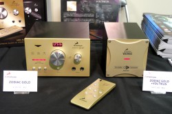 (株)フックアップからは、英Antelope Audio社初のコンシューマー・オーディオ製品となるDAコンバーター内蔵ヘッドホンアンプ「ZODIAC GOLD」と専用の電源ユニット「VOLTIKUS」がお目見えした。5月中旬の発売を予定しており、価格は「ZODIAC GOLD」が399,000円(税込)、「VOLTIKUS」とのセットが472,500円(税込)。