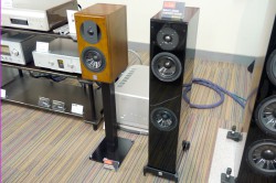 アルファメガのブースには、5月23日に発売を控えたVienna Acousticsの新スピーカー。「CONCERT GRAND」シリーズの第3世代モデルとなる「MOZART GRAND SYMPHONY EDITION」と「HAYDN GRAND SYMPHONY EDITION」だ。一般へのお披露目は今回のハイエンドショウが初となる。
