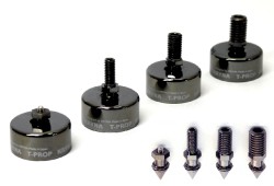 3)T-PROPのスパイクのネジ部は、M3、M6、M8、M10の4種類の太さを用意。純正のスパイクや足をネジ止めするタイプのスピーカーやスタンドの場合、そのネジ穴にT-PROPを取りつけるだけで装着可能。