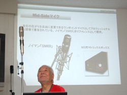 さらに本日は、行方氏によって本機で録音された音源をメインとした試聴デモが開催された。音源は女性ボーカル曲やギター曲といったものから、列車の音、雷の音、浅草・三社祭の生録といったものまで幅広く用意。編集ソフト「WaveLabLE」でMSマイクとXYマイクの音源を切り替えながら聴き比べが行われた。