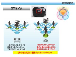 XYマイクは、録音時のL/Rの位相のズレを解決するため、左右のマイクを同一軸上に重ね合わせて配置。これにより、奥行き感を捉え定位に優れた録音を行える。行方氏は「90度のくの字型に向いた擬似的なXYマイクではない。プロは必ず同一軸上の配置を使う」と説明。※当初「本機は内部のXYマイクカプセルを回転させ、ステレオ指広角を標準の90度から120度へ切り替えられる」と記述していましたが、これは誤りでした。同機能は従来機種「H4n」に搭載されているもので、本機は対応していません。訂正してお詫び申し上げます。(7/15)