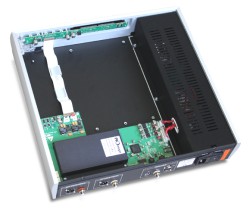 本機はDAコンバーターとしても使うことができ、192kHz/24bit対応のAES/EBUとSPDIFのデジタル音声出力を搭載するほか、384kHz/24bitまでのPCMと、5.6/6.1MHzまでのDSDに対応する独自のアルゴリズムを投入したFPGAによるアシンクロナスモードUSB入力も1系統備える。なお、USB端子経由でPCに接続する際には、Win/Macともに専用のドライバーをインストールする必要がある。