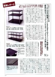 このラックの棚板は、自社開発による白樺のティグロンバーチで、板厚は15mm。支柱はマグネシウム合金を採用している。「コンシューマーとプロフェッショナルの世界における音の違いを埋める新しい位置づけのオーディオラック」として、『季刊・オーディオアクセサリー142号』の誌面でも高評価を得ており、市場でもコンシューマーとプロフェッショナルの双方から好評を得ているという。